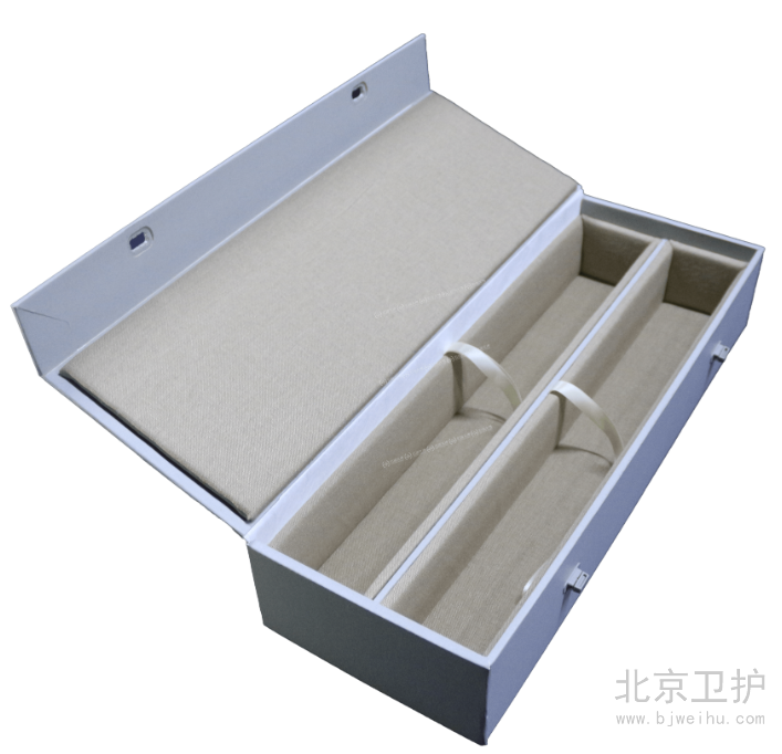 文物囊匣就是文物工作者根據(jù)文物的材質(zhì)、形狀、器形的大小、重量等多種因素,選用特殊的材料和多種多樣的制作方法為每一件文物設(shè)計制作的外包裝容器,這種傳統(tǒng)的包裝工藝技術(shù)屬于特種包裝。囊匣以對文物無害的無酸紙為主要材質(zhì),根據(jù)文物的質(zhì)地、尺寸、形狀,為每件文物量身制作,分為搖蓋式、折頁式、天地蓋式等不同類型。